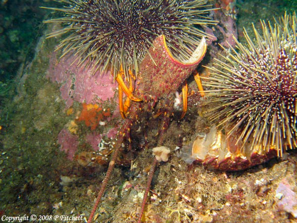 Shed shell of common lobster (crayfish), with common kina (sea urchin)
